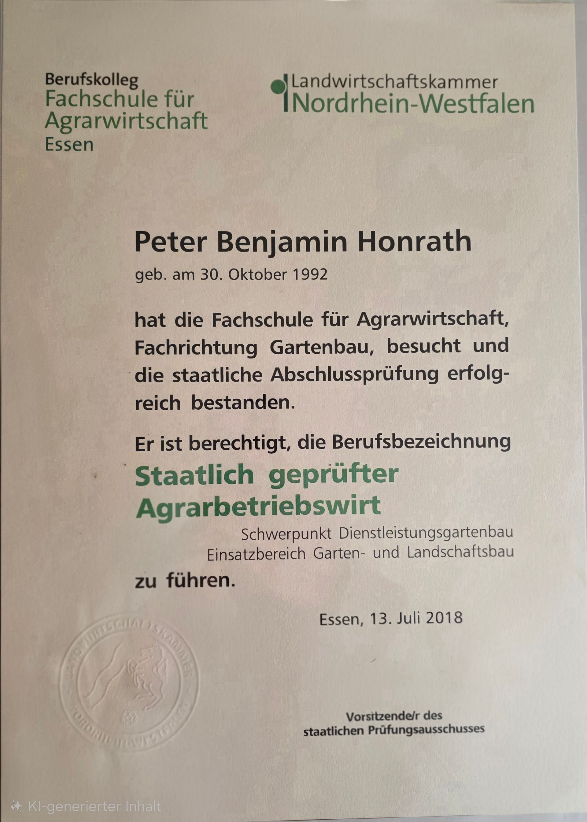 - 2018 Weiterbildung mit Erfolg bestanden als Agrarbetriebswirt
